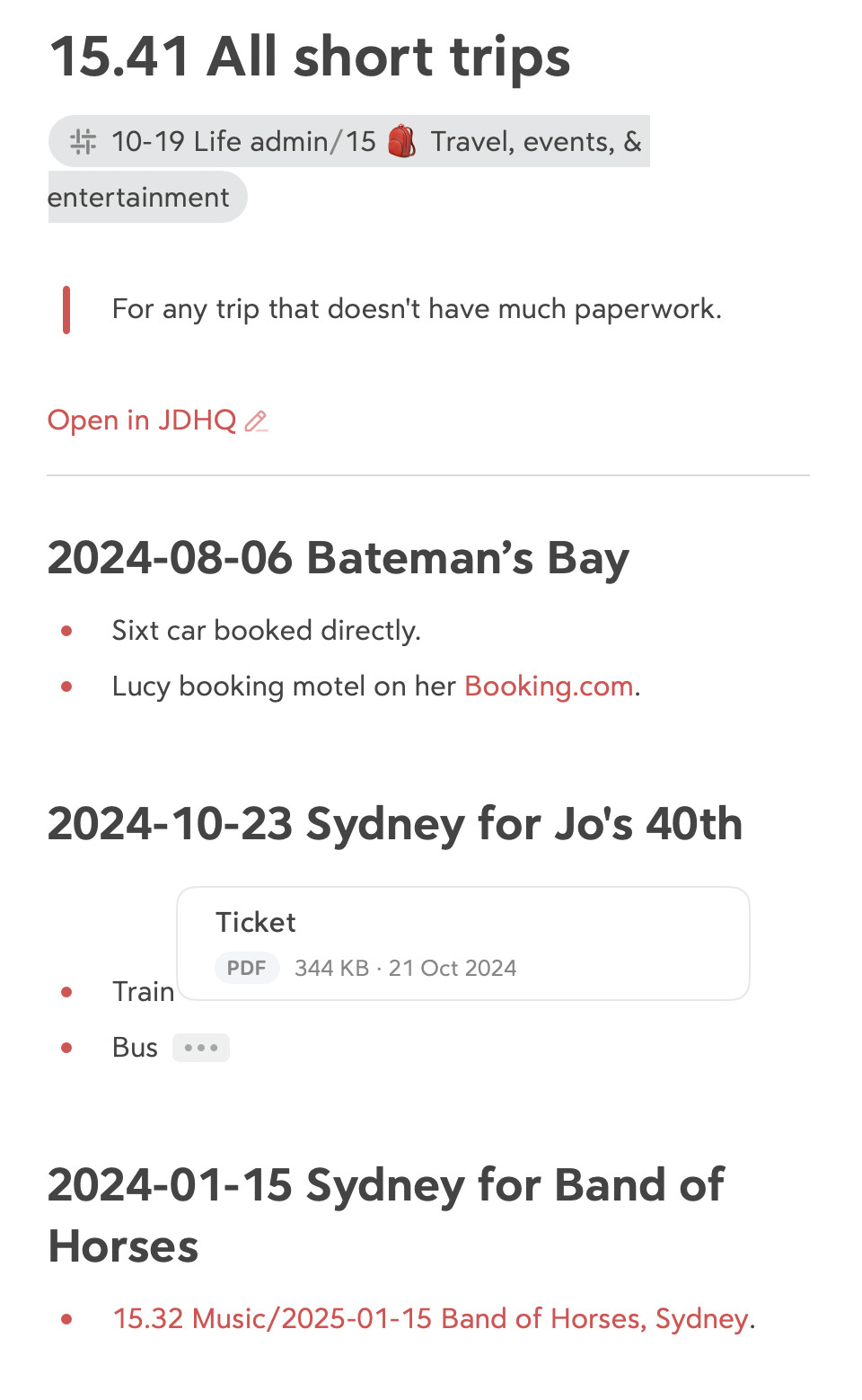 2. create a separate note in my note app (Obsidian) for each trip? (if so do you file these notes in the JDex under the note or in a subfolder under “15.41 All Short Trips” or where?)
