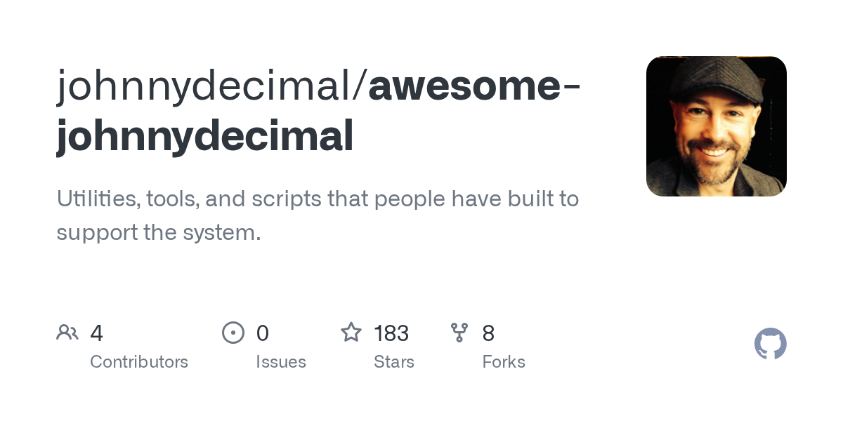 So then all of these scripts, external tools, whatever, can have a first-class home on the site. The GitHub repo for johnnydecimal.com is currently private because [reasons] but I’ll move those reasons to a new repo and make this one public again. Then y’all can PR if you want. Or send things to me and I’ll add them.